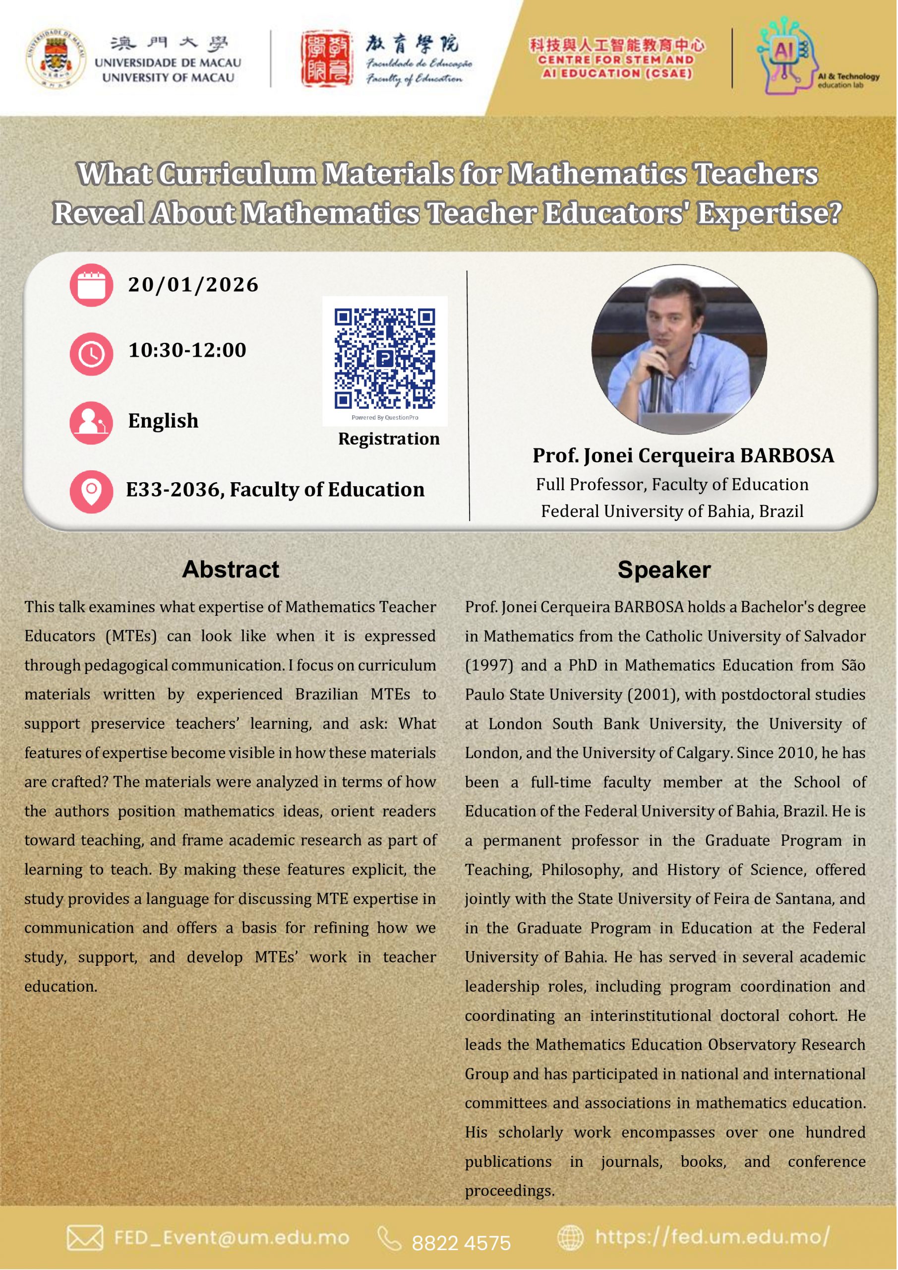 FED-CSAE Forum: “Macao-Singapore Mathematics Education Exchange Forum: Insights and Research from TIMSS/PISA and Beyond” successfully held at the University of Macau GalleryFED-CSAE Forum: “Macao-Singapore Mathematics Education Exchange Forum: Insights and Research from TIMSS/PISA and Beyond” successfully held at the University of Macau