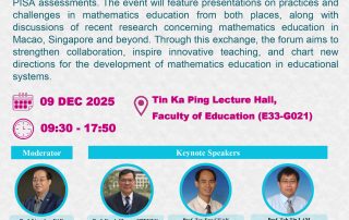 FED-CSAE Forum: “Macao-Singapore Mathematics Education Exchange Forum: Insights and Research from TIMSS/PISA and Beyond” Gallery FED-CSAE Forum: “Macao-Singapore Mathematics Education Exchange Forum: Insights and Research from TIMSS/PISA and Beyond” Events, Seminar FED-CSAE Forum: “Macao-Singapore Mathematics Education Exchange Forum: Insights and Research from TIMSS/PISA and Beyond” Nov 26 | Wed Programme Rundown ...