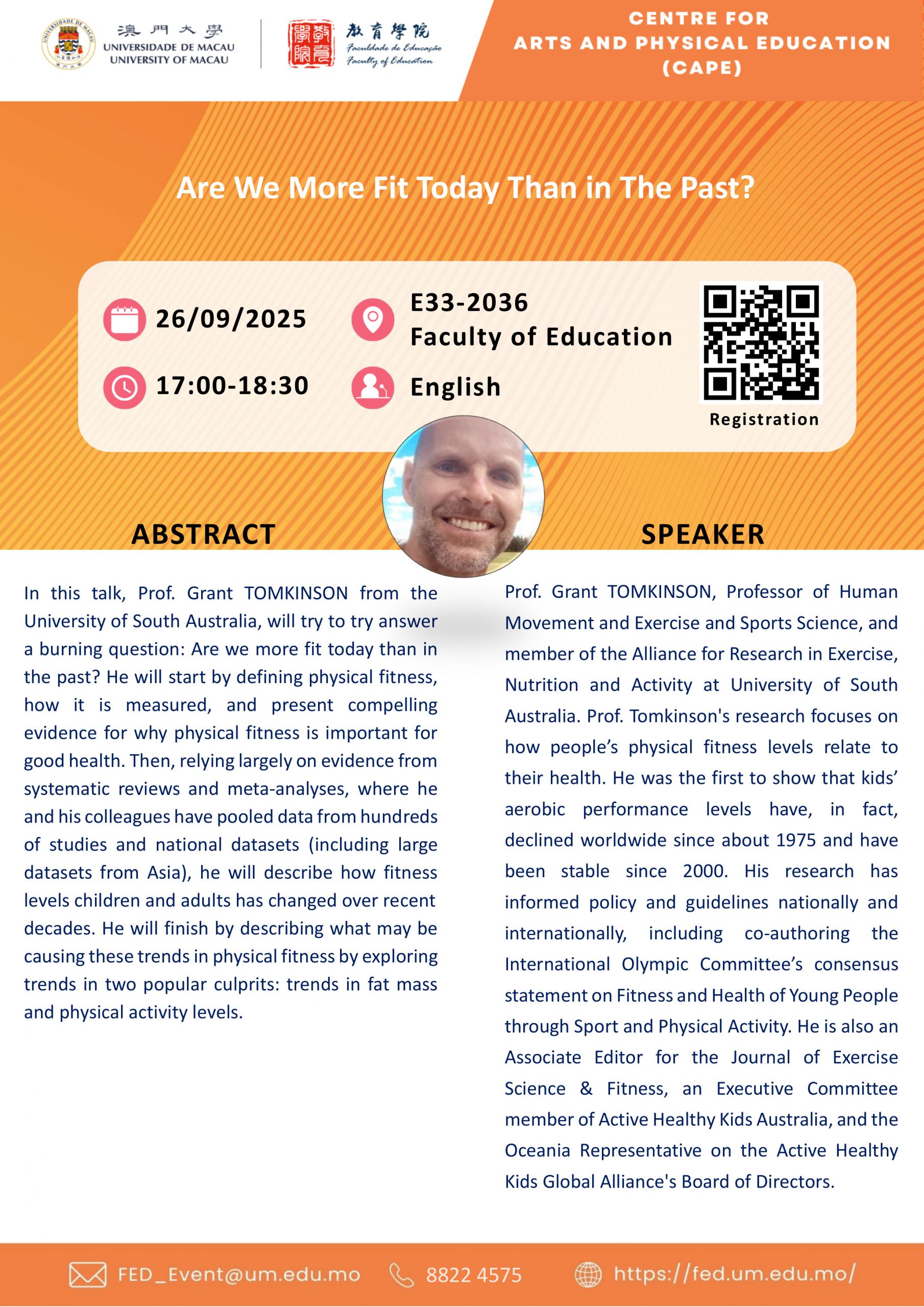 FED-CAPE Seminar: “The 24-Hour Equation: How do Physical Activity, Sedentary Behaviour, and Sleep Interact to Promote Healthy Aging?” Gallery FED-CAPE Seminar: “The 24-Hour Equation: How do Physical Activity, Sedentary Behaviour, and Sleep Interact to Promote Healthy Aging?” Events, Seminar FED-CAPE Seminar: “The 24-Hour Equation: How do Physical Activity, Sedentary Behaviour, and Sleep Interact to Promote Healthy Aging?” Jul 20 | Sun ...