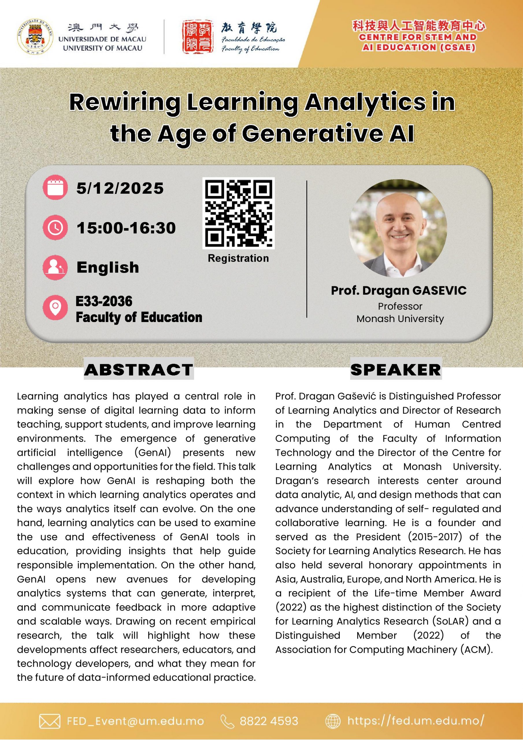 FED-CSAE Seminar: “Rewiring Learning Analytics in the Age of Generative AI”