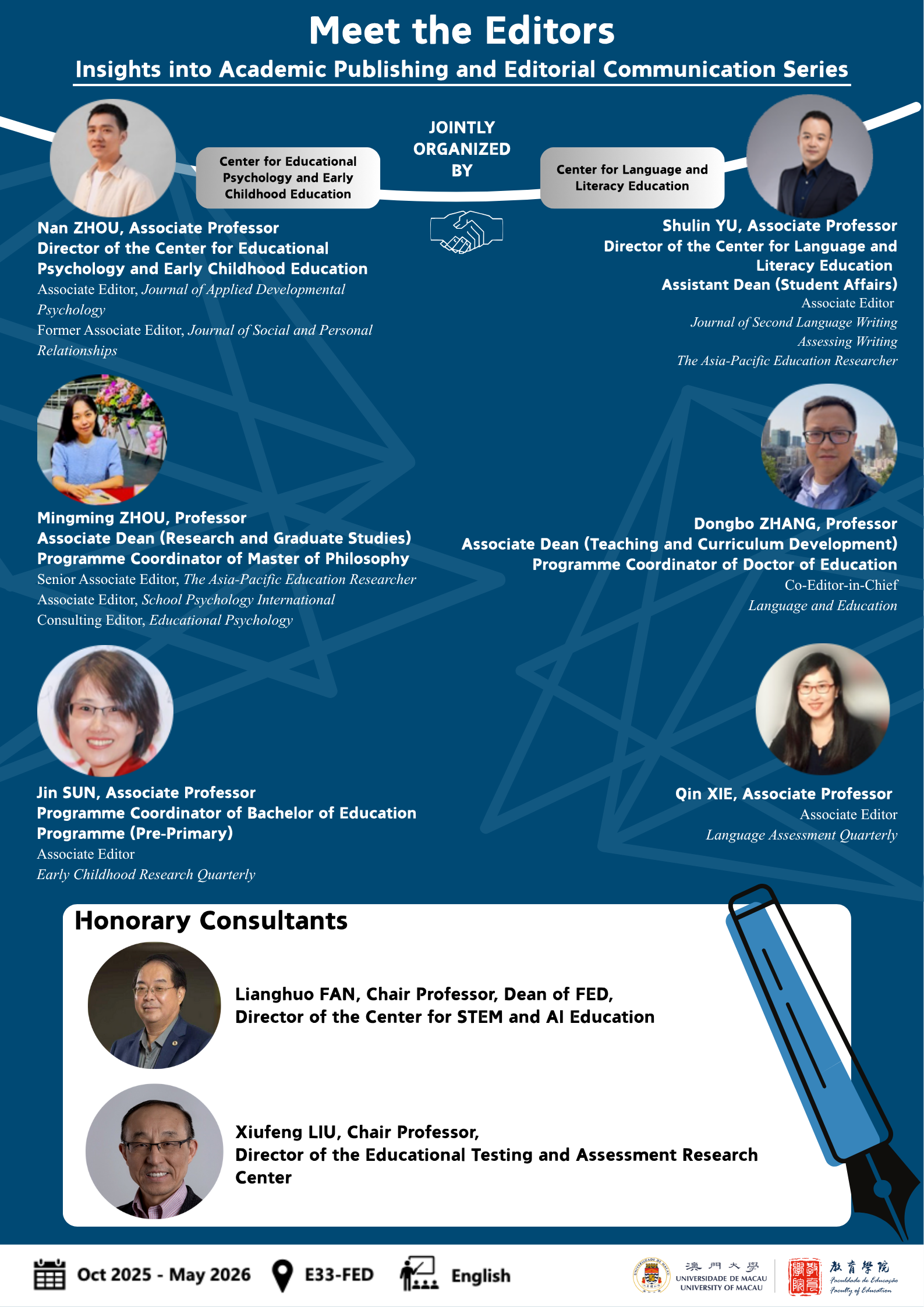 Meet the Editors Insights into Academic Publishing and Editorial Communication Series Gallery Meet the Editors Insights into Academic Publishing and Editorial Communication Series Seminar, 活動 Meet the Editors Insights into Academic Publishing and Editorial Communication Series 10 月 14 | 週二 ...