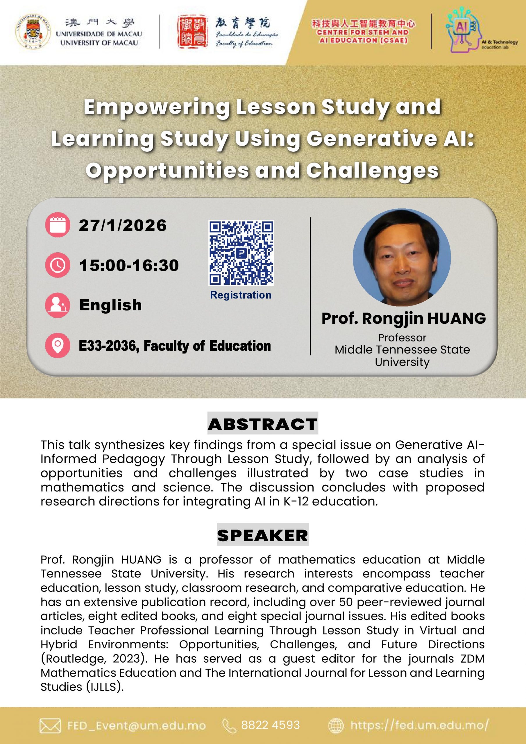 教育學院—科技與人工智能教育中心講座:”生成式AI賦能課例研究與學習研究:機遇與挑戰”